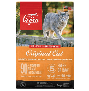 This food is made for cats of all life stages. It’s appropriate for both adult cats and growing kittens. Like most Orijen foods, it contains a variety of protein sources, including a mix of poultry meat, organs, and cartilage, along with whole eggs, flounder, mackerel, and herring.