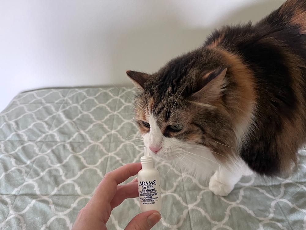 Alongside the active ingredients that kill ear mites (typically pyrethrins, ivermectin, or selamectin), you might also want to look for non-active ingredients to soothe your cat’s irritated ears. These include aloe and lanolin.