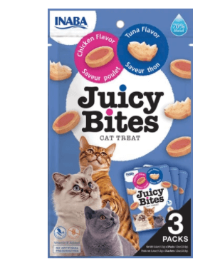 A 3-count of Inaba Ciao Tuna & Chicken Flavor Juicy Bites Grain-Free Cat Treats costs $5.49 at Chewy.