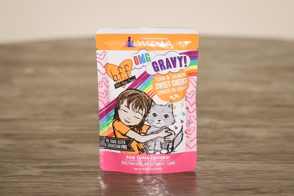 | BFF OMG Tuna & Salmon Sweet Cheeks Dinner in Gravy Wet Cat Food | Wet | $0.47 per oz | B- |
