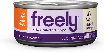 | Freely Rabbit Recipe Limited Ingredient Wet Cat Food | Wet | Rabbit | 175 kcal/5.5-ounce can | $0.67 | B- |