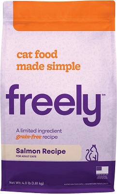 | Freely Salmon Recipe Limited Ingredient Dry Cat Food | Dry | Salmon | 423 kcal/cup | $0.41 | C+ |
