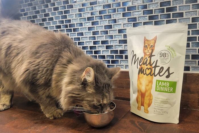 To test Meat Mates, I ordered a case of the Lamb Dinner Grain-Free Wet Food, a bag of freeze-dried beef cat treats, and both the Chicken Dinner and Lamb Dinner freeze-dried foods.