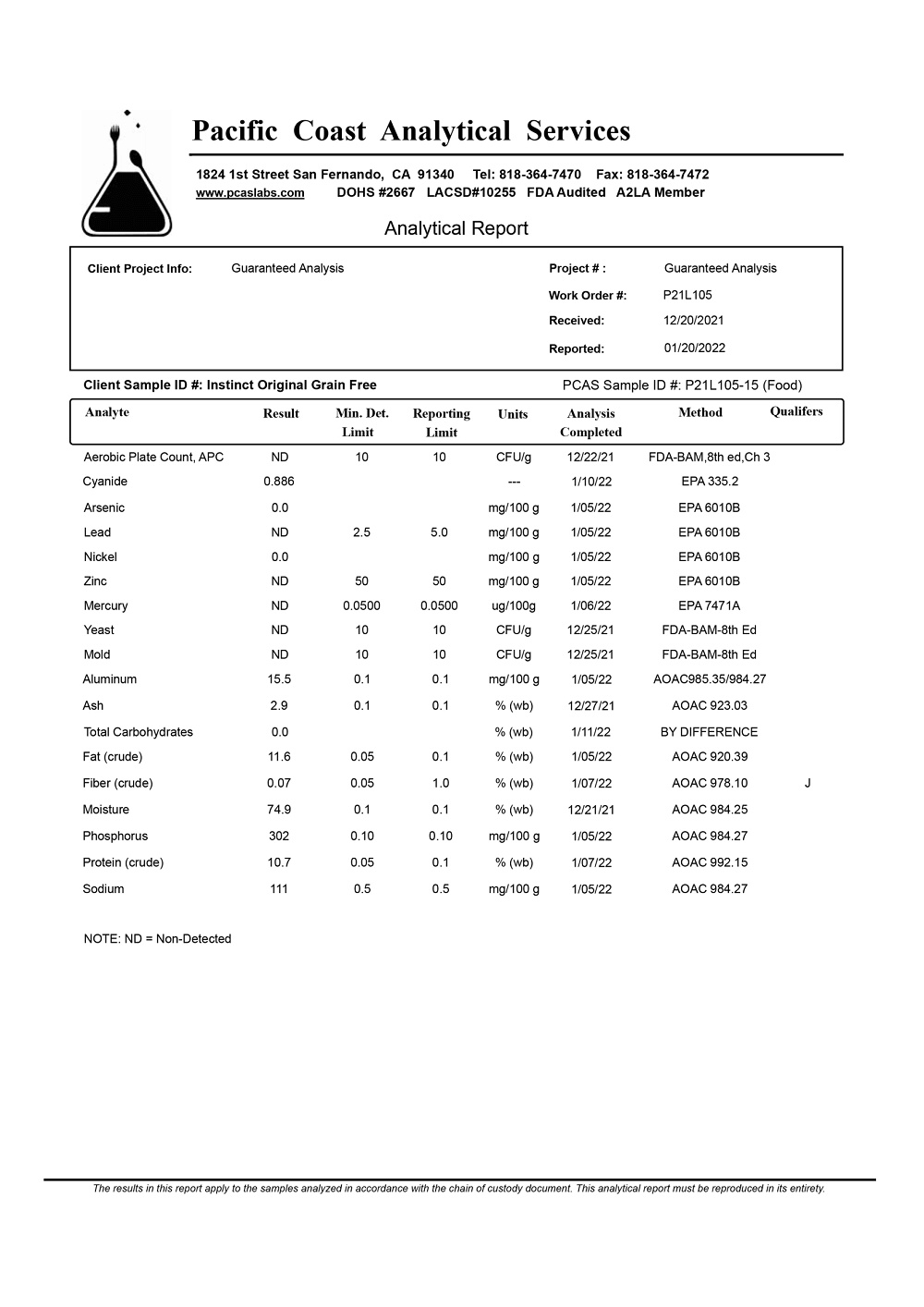 Your site has caused me considerable worry, as well as time researching. I read your article, with the lab results, on the same day that my first order of Instinct arrived, for my cat.