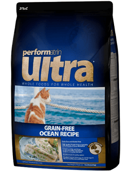 | Performatrin Ultra Grain-Free Ocean Recipe Dry Cat Food | Dry | Ocean Whitefish | 455 kcal/cup | $0.18 per oz | C |