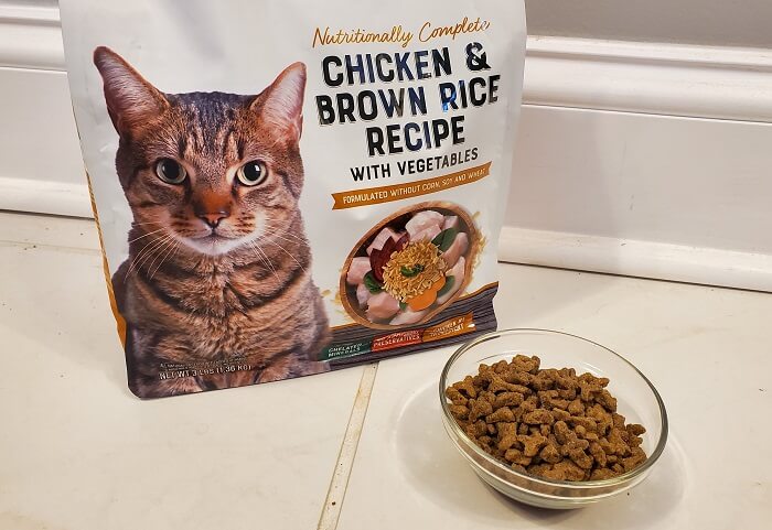 To test PetGuard cat food, we ordered a bag of their LifeSpan Chicken & Brown Rice Recipe with Vegetables dry food and an assortment of canned foods.