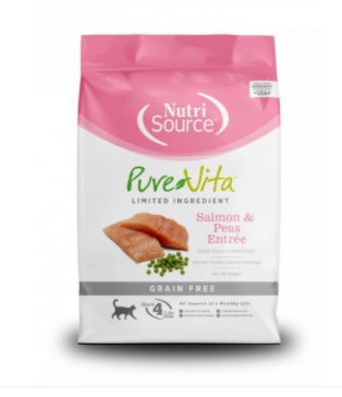 | Pure Vita Grain Free Salmon and Peas Entrée | Dry | $5.15 per lb | B- |