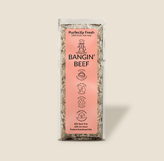 - The Bangin’ Beef is made from 80 percent beef trim, 20 percent ox heart and ox liver.