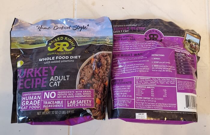 I was enthusiastic about purchasing this food for my 13 year old cat. I was fortunate to find a pet food retail store in NYC that sells this food per package, instead of having to order a minimum box of 8 packages via Raised Right’s website.