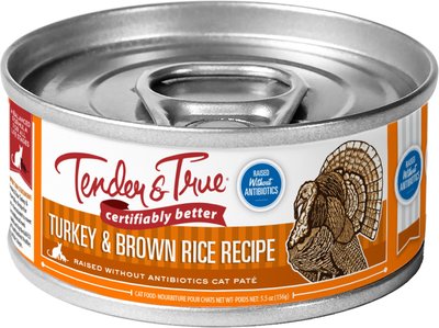 | Tender & True Turkey & Brown Rice Recipe Canned Cat Food | Wet | Turkey | 185 kcal/can | $0.19 per oz | B+ |