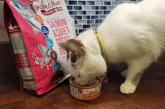 “This is the only food that my large cat has consistently done well on over the past seven years. A couple years ago when I was not at my usual store, I changed her food from this one to “I and Love and You”, which left her with bladder crystals and a prescription bladder health kibble that was expensive and she barely touched. Switched her back to Tender and True, and the crystals went away. We were combining it with Weruva wet food, but she eventually kept getting diarrhea from that brand. Tl;dr, Tender and True dry food is the only brand my large cat tolerates well.” – by Sarah Reviewing Tender & True Organic Turkey & Brown Rice Canned Cat Food on December 25, 2024