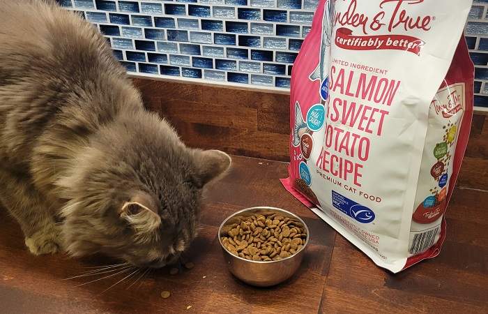 | Tender & True Limited Ingredient Salmon & Sweet Potato Recipe Grain-Free Dry Cat Food | Dry | Salmon | 470 kcal/cup | $4.29 per lb | B |