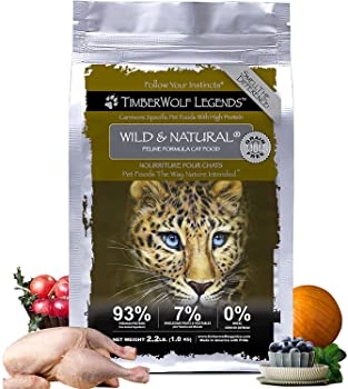 | Timberwolf Legends Wild & Natural Feline Formula Cat Food | Dry | Chicken | 4,480 kcal/kg | $6.82 per lb | B |
