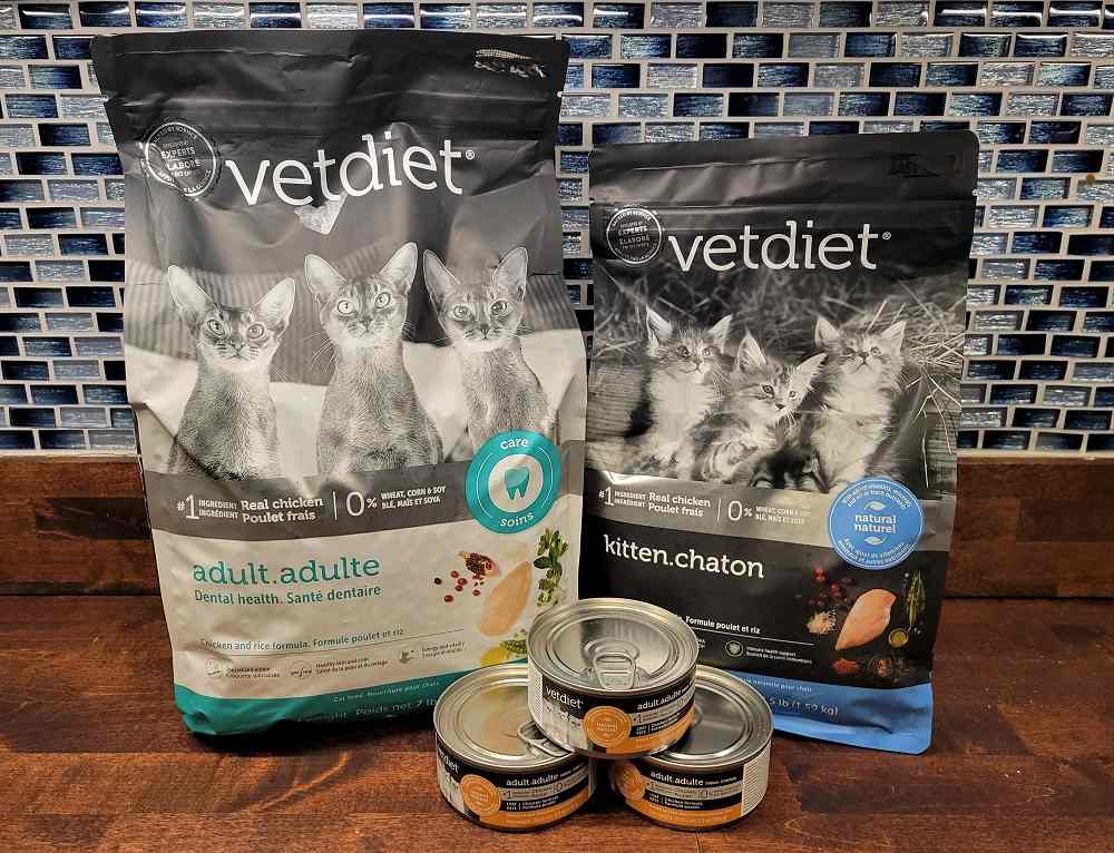 Both Vetdiet dry and wet foods are categorized by life stage with some special diets for weight control, dental health, and indoor cats.